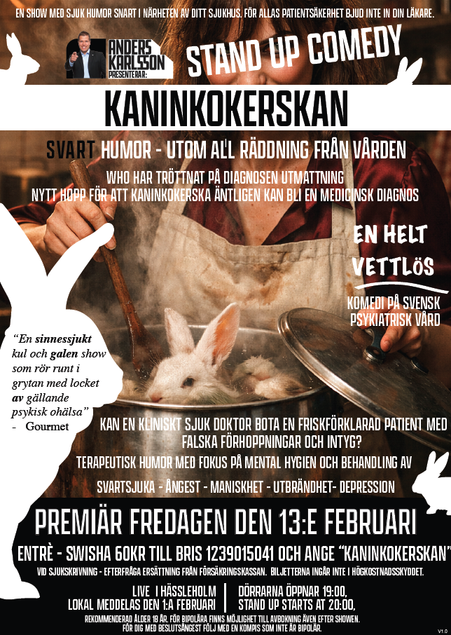 KANINKOKERSKAN explores psychiatry, power, and the strange comfort of being labeled “abnormal” in a world where dysfunction is often mistaken for professionalism. With sharp humor and dark satire, the show questions who actually benefits from constant diagnoses—and whether not fitting neatly into a psychiatric category might sometimes be a sign of health, not illness.